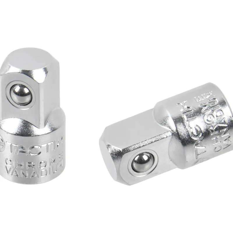 Tactix 1/4″ hylsysovitin, kromi-vanadiiniterästä. Muuntaa 1/4″ naaraspään 3/8″ urospääksi.