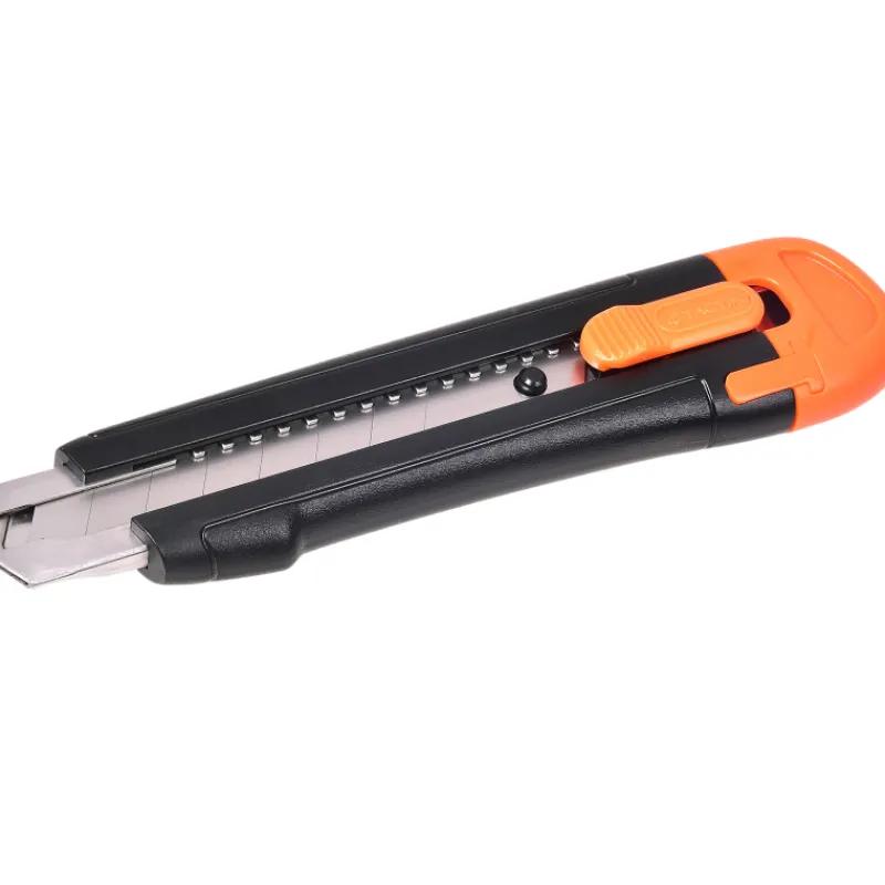 Terävä ja tarkka Tactix 18 mm katkoteräveitsi. Kestävästä muovista valmistettu runko takaa kestävyyden ja ergonominen liukumaton kahva tukevan otteen. Helppokäyttöinen terälukko tekee terän vaihtamisesta vaivatonta ja turvallista. Pakkaus sisältää kolme terää.