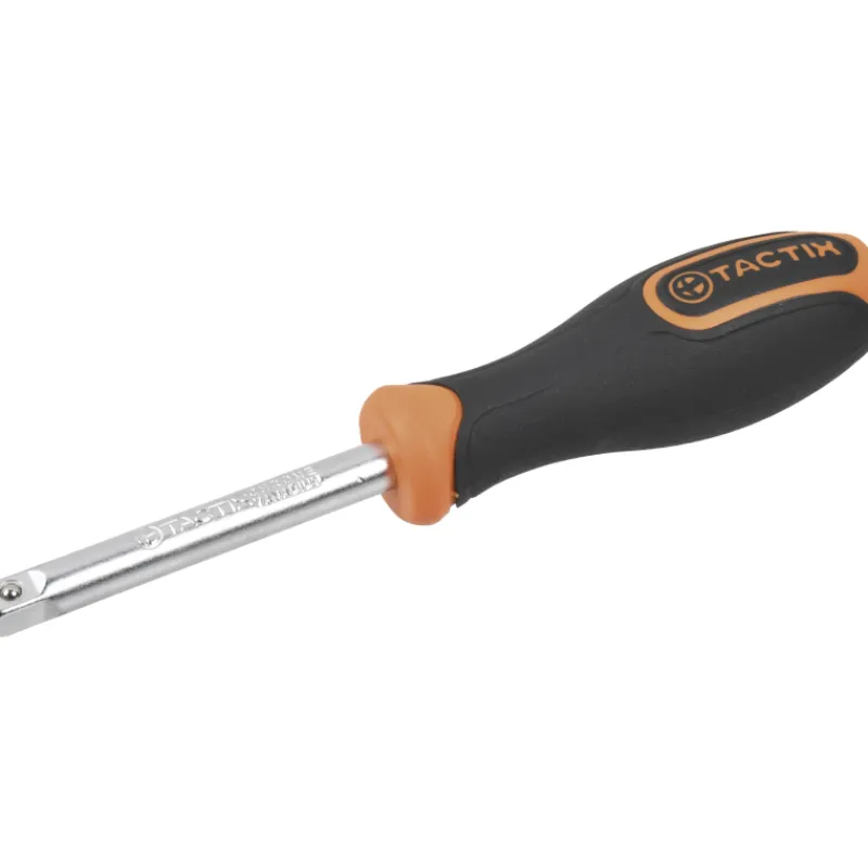 Tactix 1/4″ kromi-vanadiiniteräksinen kahvaväännin 1/4″ hylsyille. Vääntökahvassa kestävä ja mukava kumikahva.