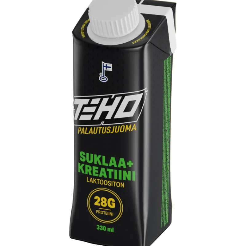 Teho palautusjuomat on valmistettu suomalaiseen laktoosittomaan lähimaitopohjaan. Teho palautusjuomat ovat jaettu käyttöyhteyden perusteella voima- tai kestävyysharjoitteluun. Teho Suklaa + Kreatiini -palautusjuoma tukee voimaharjoittelun jälkeistä palautumista tai sen voi nauttia sellaisenaan välipalana. Juoma sisältää 1 g kreatiinia, 28 g proteiinia ja 8,8 g / dl hiilihydraatteja. Kreatiini on tehokas luontainen aine, joka auttaa kehittämään harrastajan ja urheilijan suorituskykyä sekä lihasmassaa.