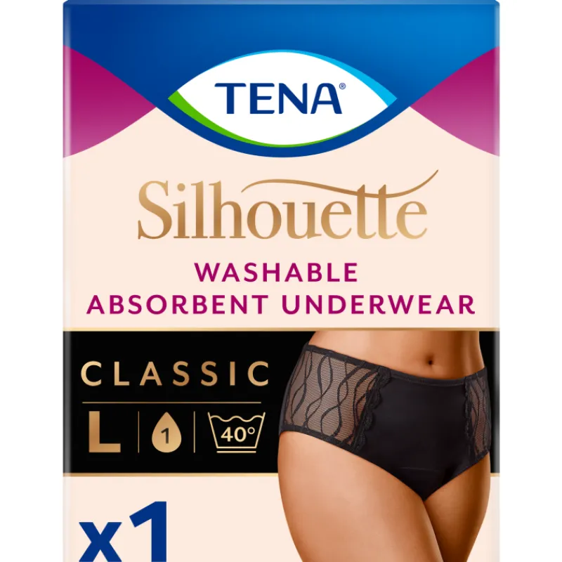 Pestävät Tena Silhouette inkontinenssialushousut antavat luotettavan suojan huomaamattomasti. Tyylikkään klassisen mallisissa, istuvissa ja napakoissa inkontinenssialushousuissa on hieman korkeamman vyötärölinja. Pikkuhousumallissa valmistusmateriaalit ovat laadukas kangas ja hienostunut pitsi, ja niihin on integroitu kolmitehoinen Tena-suoja vähäistä virtsankarkailua vastaan. Inkontinenssialushousut suojaavat ohivuodoilta, hajuilta ja kosteudelta aina 50 pesun ajan (40 asteessa).