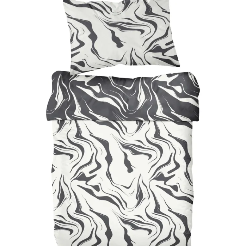 Today Väre -puuvillapussilakanasetti tuo makuuhuoneeseen levollista ilmettä kauniilla mustavalkoisella kuosillaan.