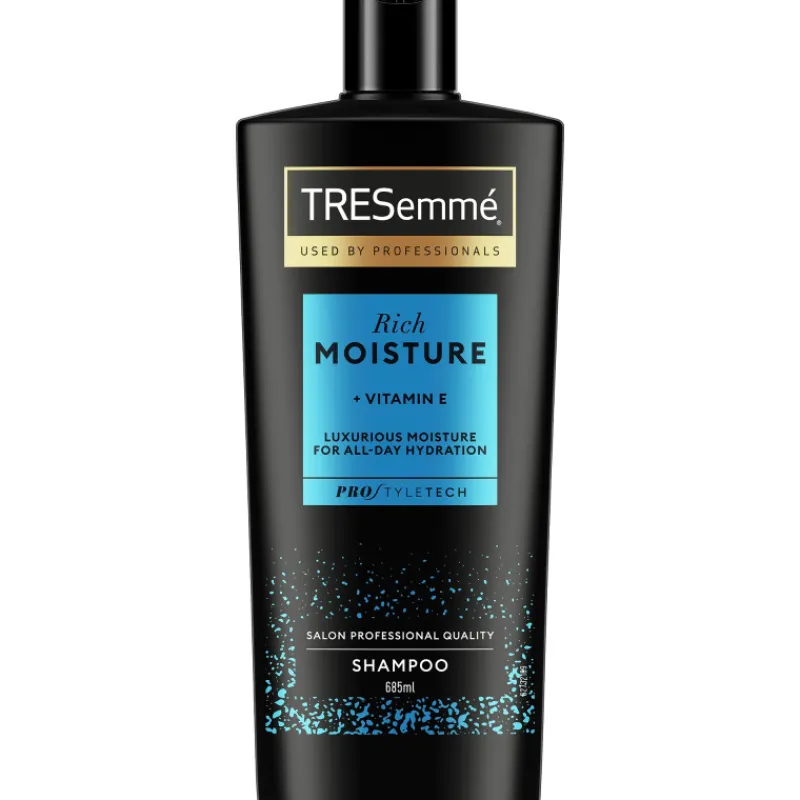 Kosteuttava TRESemme Rich Moisture -shampoo tuo hiuksiisi ammattilaistason tyylin ja upean kiillon. Hellävarainen shampoo sisältää E-vitamiinia, ja se tekee hiuksista pehmeät ja kosteutetut. Käytä shampoota yhdessä TRESemme Rich Moisture -hoitoaineen kanssa.