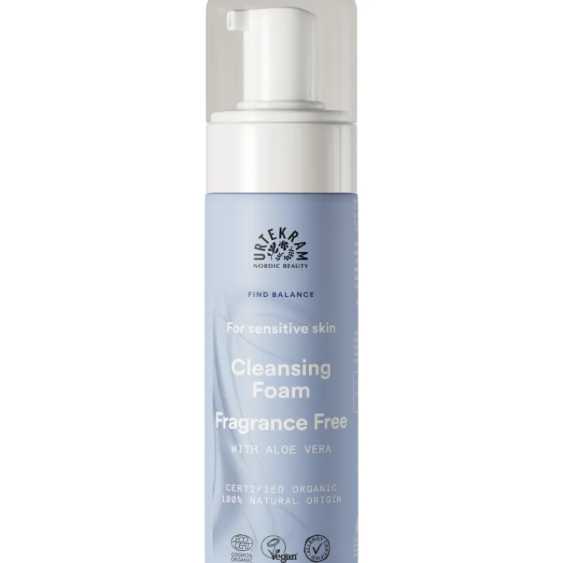 Urtekram Find Balance Fragrance Free -hajustamaton ja hellävarainen puhdistusvaahto sopii herkälle iholle puhdistusaineeksi. Puhdistusvaahdon koostumus sisältää kosteuttavaa aloe veraa. Pesuvaahto poistaa hellävaraisesti epäpuhtaudet ja meikin kuivattamatta tai ärsyttämättä ihoa. Sisältää hoitavia ainesosia, jotka auttavat ihoa tuntumaan puhtaalta, sileältä ja näyttämään terveeltä sekä tasapainoiselta.