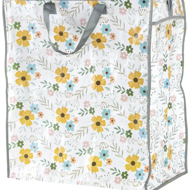 Tilava ja kestävä kassi monenmoisen tavaran tai tekstiilien säilytykseen. Materiaali on polypropeeni, koko 48 x 55 x 30 cm. Säilytyskassissa on kätevä vetoketjusuljenta sekä printattu monivärinen kuvio-kuosi. Paino 100 g.