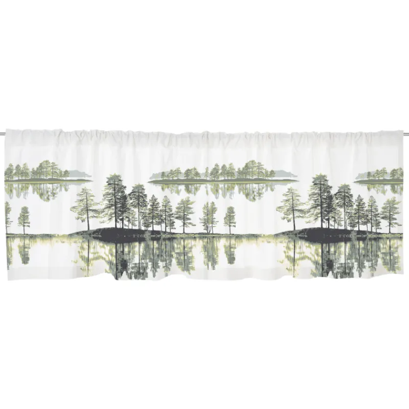 Vallila Heijastus -kuosi avaa näkymän Pieliselle, Kolin kansallismaisemaan. Riina Kuikan suunnittelema kuosi syntyi kesähelteillä, puiden muotojen peilautuessa täysin tyynestä vedestä.