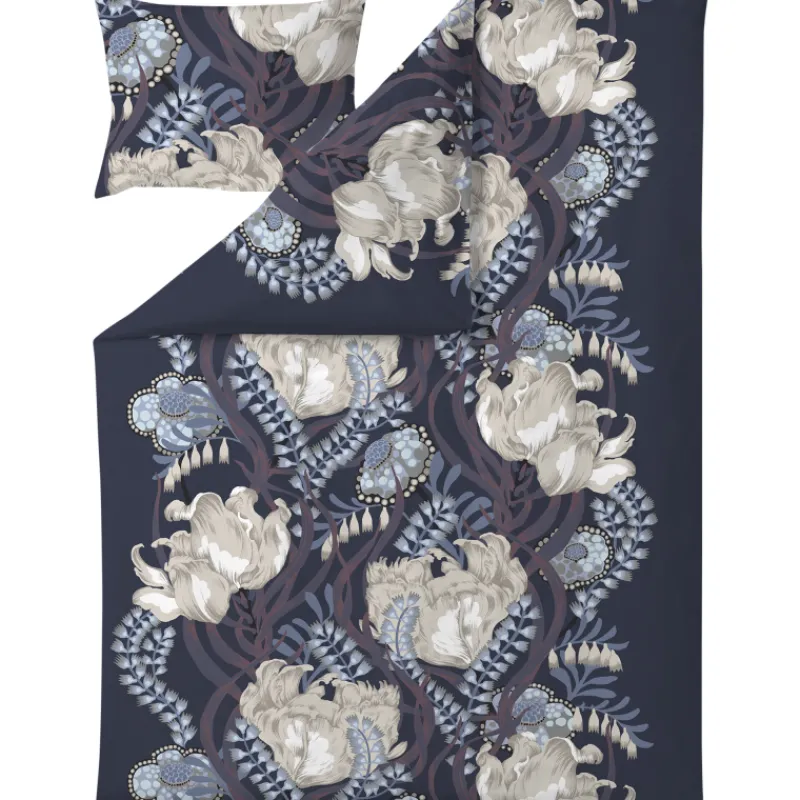 Vallila Anais -kuosi tuo näyttävää ilmettä makuuhuoneeseen. Kuosi on eräänlainen tulppaanifantasia: sensuelli virtaava kukkakuosi ylöspäin soljuvalla rytmillä.