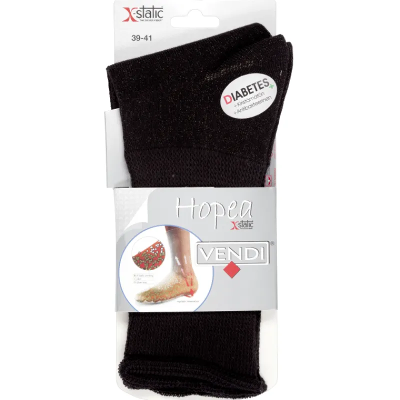 Vendi-hopeakuitusukat sisältävät X-Static-kuitua, Ökotex-sertifioitua puuvillaa sekä muita korkealaatuisia kuituja, jotka takaavat laadukkaat ja mukavat sukat terveystietoisille jaloille.