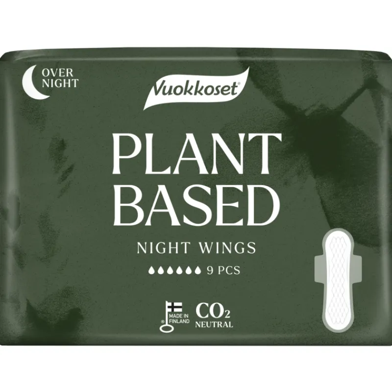 Kasvipohjainen Vuokkoset Plant Based -yöside on ekologinen ja imukykyinen. Se on valmistettu luonnollisista ja uusiutuvista raaka-aineista. Tuotteen CO2-päästöt ovat luonnostaan pienemmät.