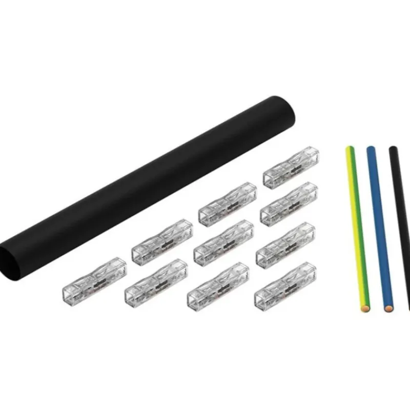 Wago-johdonkorjaussarja on loistava ratkaisu kaapeleiden nopeaan ja helppoon korjaukseen. Pakkaus sisältää 10 kappaletta 2773-2401 inline-liittimiä, 1 kappaleen 16 cm kutistesukan (liimalla), sekä 3 kappaletta 15 cm 4 mm² johdinta monisäiekaapeleille.