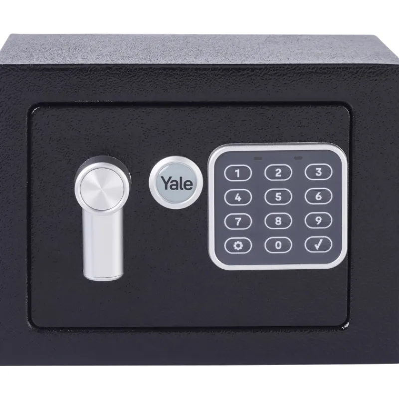 Yale YSV170 Mini on 16 mm lukitusteljillä varustettu pieni teräsrakeinen turvakaappi, missä säilytät esimerkiksi passit ja pienet arvoesineet. Kaappi avataan syöttämällä käyttäjäkoodi helppokäyttöisellä digitaalisella näppäimistöllä ja kääntämällä ovessa olevaa painiketta.